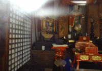 ■善立院(頂妙寺塔頭) 頂妙寺の山門をくぐると広い境内があり、左側に塔頭が並んでいます。その一画に善立院があり、痔疾平癒の信仰のある秋山自雲も祀られています。 頂妙寺は、日蓮宗一致派総本山。日祝上人を開山とします。 このお寺の秋山自雲の碑は、お堂の中にあり、提灯が石碑の上にあります。堂の中は広く、石碑の裏までは入れます。手前の赤い大きなものと奥に小さなものの2種類が提げられ、どちらにも「南無秋山自雲霊神」と書かれています。石碑には、痔の〇守護〇、秋山自雲霊〇と書かれています。(〇の部分は摩滅していて判読困難でした。) 以前に訪れたときは、このお堂は、頂妙寺に属すものと思っていましたが、再訪すると頂妙寺の塔頭である善立院のものであることに気が付きました。 善立院を訪ねることはしませんでしたが、たまたま隣の塔頭(妙雲院)のご住職とお話ができました。頂妙寺の塔頭は、今は頂妙寺から経済的には独立していて、秋山自雲のお堂は善立院に属するものとのことでした。 i以前に訪れたときと、大きく変わっていない様子ですが、画像も改めます。 (平成16年5月3日再訪)