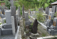 ■東本願寺 大谷墓地(秋山自雲の墓) 痔疾平癒の信仰のある秋山自雲の墓が本願寺大谷本廟(西大谷)にある墓地の一画に他のお墓と同じようにひっそりとあります。はじめは、東漸寺に祀られたようですが、その後、 「東漸寺は天正18年(一五九〇)の創建と伝えられますが、明治の廃仏毀釈の波にさらされ荒廃し、明治8年(一八七五)廃絶されました。旧寺地は、現在は東大谷墓地となっています。南向きの古びた墓ですが、秋山自雲の墓は十七区に現存します。」(奥沢康正著「京の民間医療信仰」) 広い墓地の中で比較的上の方の17区243号にあります。お花が供えられており、今も訪れる方もいるようです。