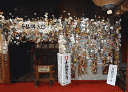 月曜日のお昼頃に訪れたが、夫婦、家族連れなど14,5人が参拝していた。千佛洞めぐりは、本堂を入って右側に入口がある。中は順路表示がある個所以外はかなり暗く、一人であるくと不安になるほど。通路には、仏さまが祀ってある。痔病封じ仏はそのひとつ。「痔病封じ仏 じろう イボ痔 切れ痔」と書かれている。