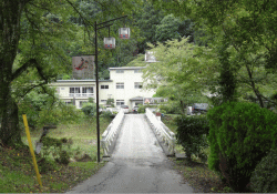 福島県石川群石川町にある猫啼温泉。今出川のほとりに宿が立つ。