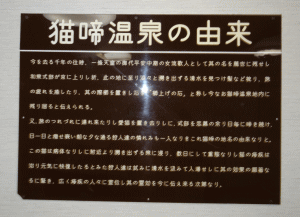「猫啼温泉の由来」が書かれている。 |